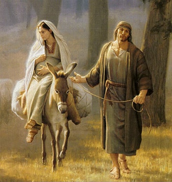 Это Иосиф шёл впереди ослика, на котором ехала беременная Мария. Это Иосифу во сне говорил Бог, что делать и куда идти, и он слушался и поспешно, ночью, бежал в Египет.